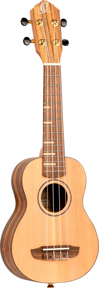 UKELELE SOPRANO Ukelele tamaño soprano RUTI-SO Timber Series. Cuerpo de ovangkol, tapa de cedro macizo, mástil de okoume. Diapasón y puente de nogal. Acabado natural satinado. Binding de arce y nogal. Inlays estilo »bar». Escala 432mm. Clavijeros dorados. Monta cuerdas UWNY-4-SO. INCLUYE FUNDA DELUXE.