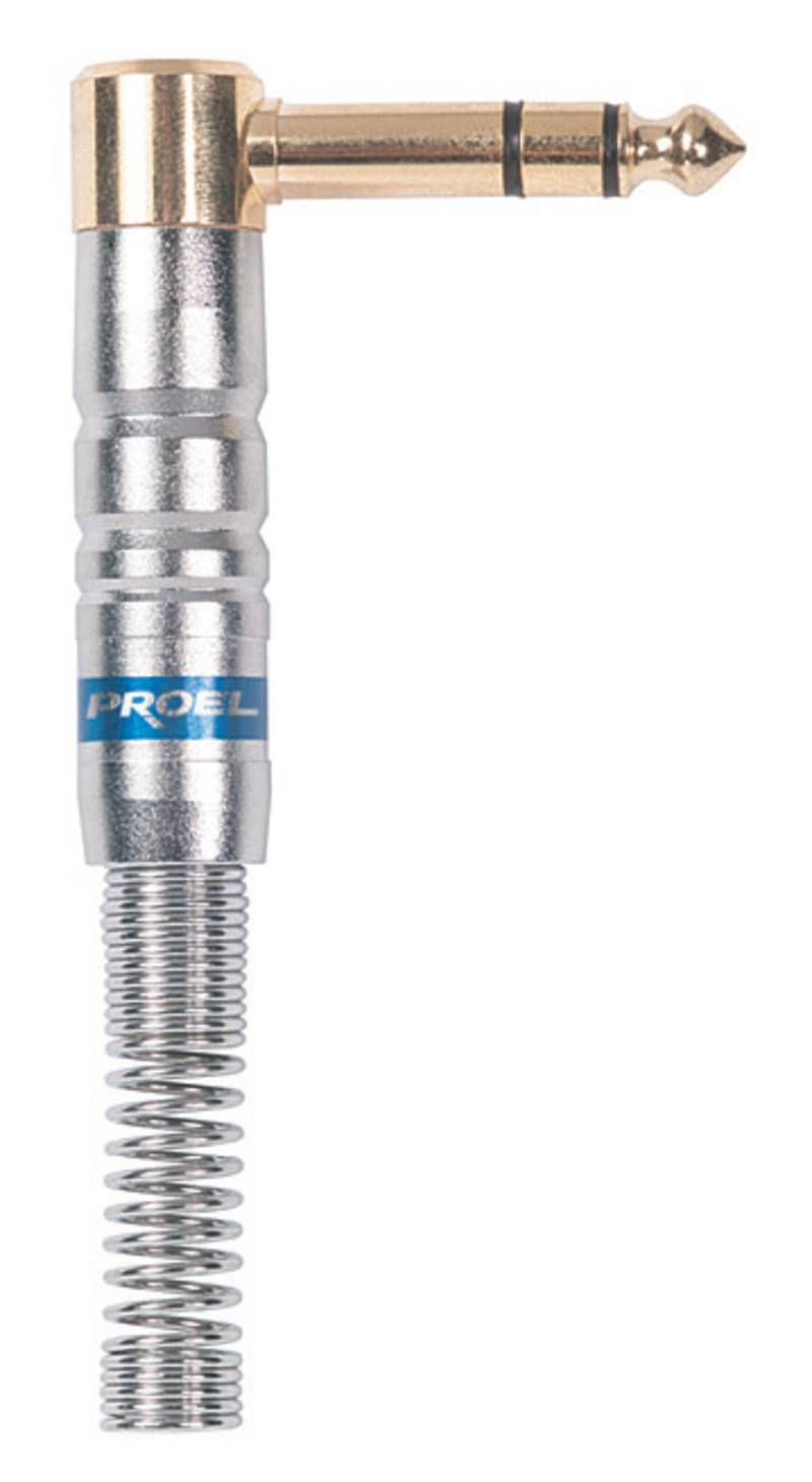CONECTOR JACK Conector Proel S242S. Conector jack acodado estéreo. Contactos chapados en oro y carcasa plateada.