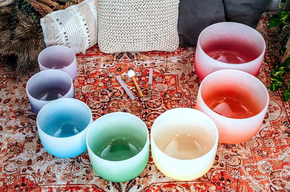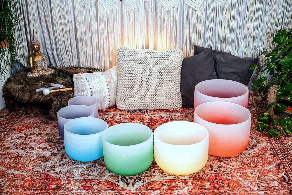 Cuencos cantores de cuarzo esmerilado de color