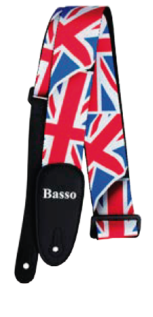 SF354 Correa para guitarra y bajo. Fabricado de poliester con estampado de la bandera del Reino Unido. 5 cm. de ancho. Ajustable de 92 cm. a 155 cm.