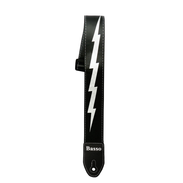 SF51 Correa para guitarra y bajo. Fabricado con material sintético (Vinyl tech) 100% reciclable. Con ajuste de triple deslizamiento. Extremos sintéticos (Vinyl tech). 5 cm. de ancho. Ajustable de 85 cm. a 150 cm. Negra Rayo.