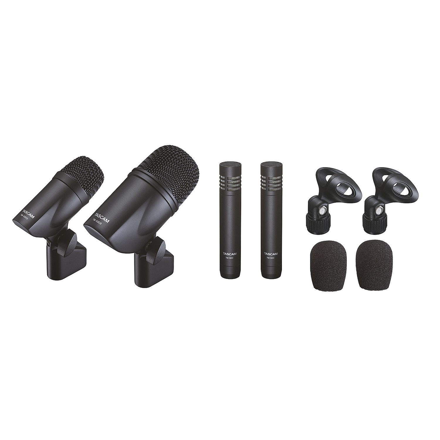 Conjunto de cuatro micrófonos a medida para obtener un buen sonido de batería con facilidad usando un grabador multi pista o interface de audio Tascam con un software DAW. Especialmente diseñado para aquellos que empiezan y no pueden permitirse un micro para cada parte de la batería, este kit cumple los mínimos requisitos para la grabación con múltiples micrófonos y puede se rusado incluso por aquellos que todavía no estan familiarizados con la creación de una mezcla de varias fuentes con buen sonido. Está compuesto por un micro dinámico para bajo o bombo, otro micro dinámico diseñado para la caja y dos micros de condensador que pueden usarse en el hi-hat, los toms o los platos. Cada tipo de micro tiene sus características especiales para resaltar el instrumento para el que ha sido diseñado. La respuesta en frecuencia de los TM-50DB proporciona el empuje de bajos compacto con la pegada justa, mientras que el TM-50DS realza el caracter especial de la caja con ataque y claridad. El TM-50C puede usarse como micrófono de ambiente para capturar el sonido del hi-hat y los platos. Como micro de condensador, maneja altas presiones sonoras y captura un rango de frecuencia amplio. Con el par que incluye el kit, pueden usarse también para crear grabaciones estereo de toda la batería fácilmente, apoyados por los micros de bombo y caja.