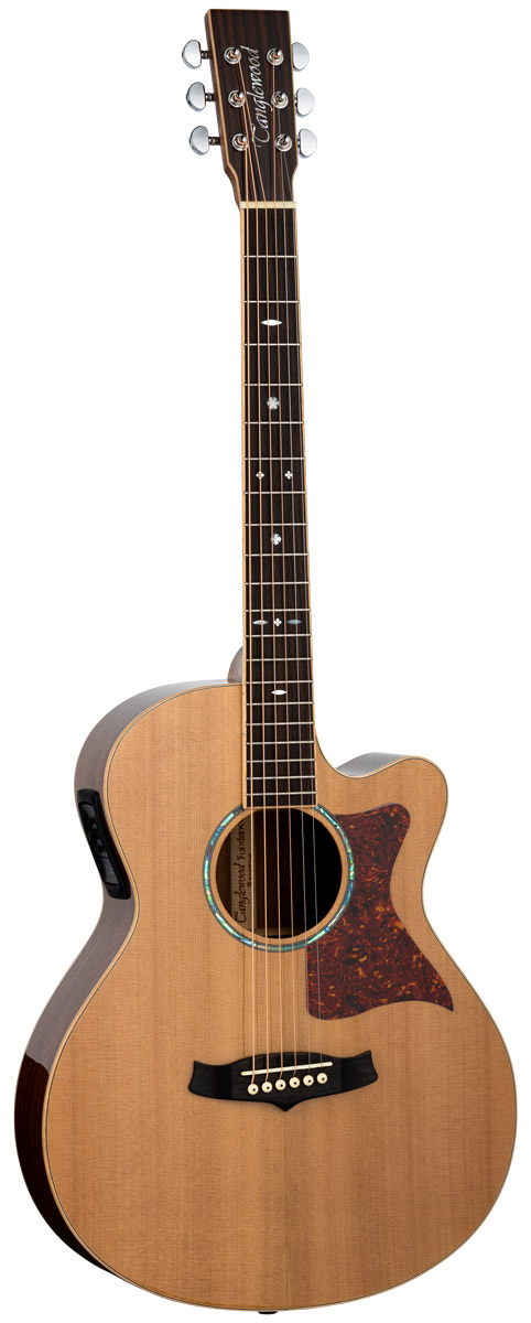 TW45RE SUPER FOLK CON CUTAWAY TODO MACIZO Tapa: Cedro Macizo. Fondo y Aros: Caoba Maciza. Diapasón: Palosanto. Cuerdas: Elixir Nanoweb 12-53. EQ: LR Baggs stage pro element. Las imágenes publicadas pueden diferir ligeramente del producto final.