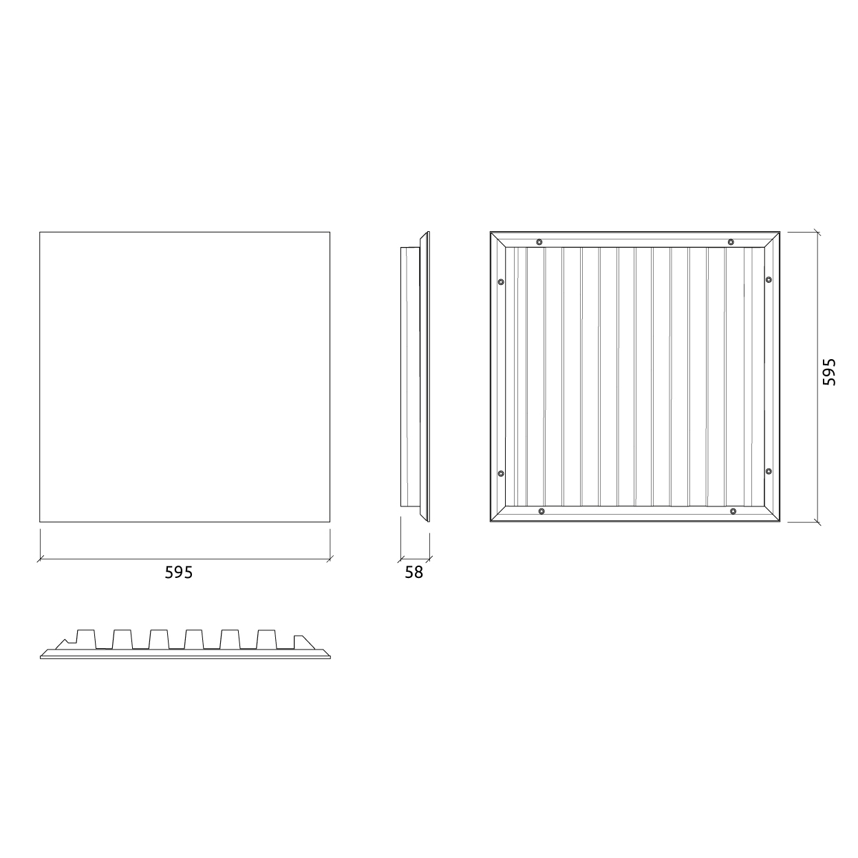 Dimensiones: 595 x 595 x 55mm (unidad)