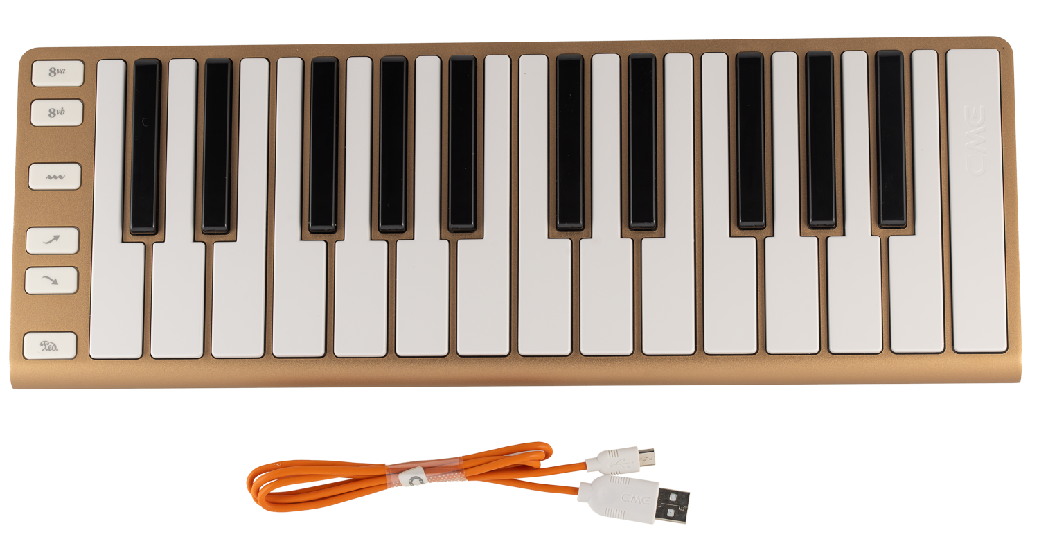 XKEY25 25 teclas de tamaño completo (2 octavas) Teclas de tamaño real con respuesta al tacto. Aftertouch polifónico. Compatible con cientos de aplicaciones gratuitas y profesionales. 100% compatible con MIDI. Botones inteligents. Botones de inflexión de tono y modulación sensibles a la presión con datos de control MIDI continuos. Botón de sostenido. Alimentado por USB (no se necesita fuente de alimentación externa). Firmware actualizable a traves de USB. Configurable a traves de la aplicación gratuita Xkey Plus para iOS Mac OSX y Windows. Conector micro USB (cable incluido). LED indicador de actividad. Consumo de energia: ~ 125mW / 25 mA. Cuerpo de Aluminio. Dimensiones: 388 x 135 x 16 mm. Peso: Solo 600g.