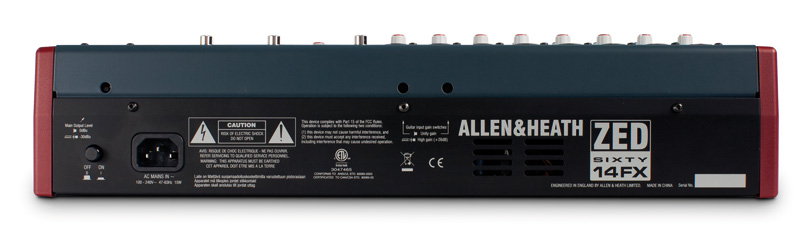 ZED60-14FX es un mezclador compacto y fácil de transportar, utilizable tanto en directo como en estudio, y que es especialmente adecuado para pequeñas bandas. Será especialmente apreciado por los guitarristas, ya que dos de los ocho canales mono que incorpora, disponen de entradas de alta impedancia a través de jack, capaces de manejar tanto señales con nivel normal de línea, como las procedentes de las pastillas de guitarra, por lo que estos instrumentos pueden ser conectados directamente al mezclador sin necesidad de utilizar cajas DI. Estas entradas han sido especialmente optimizadas para que sean capaces de recrear el sonido característico -increíble definición y calidez- de los amplificadores clásicos a válvulas.